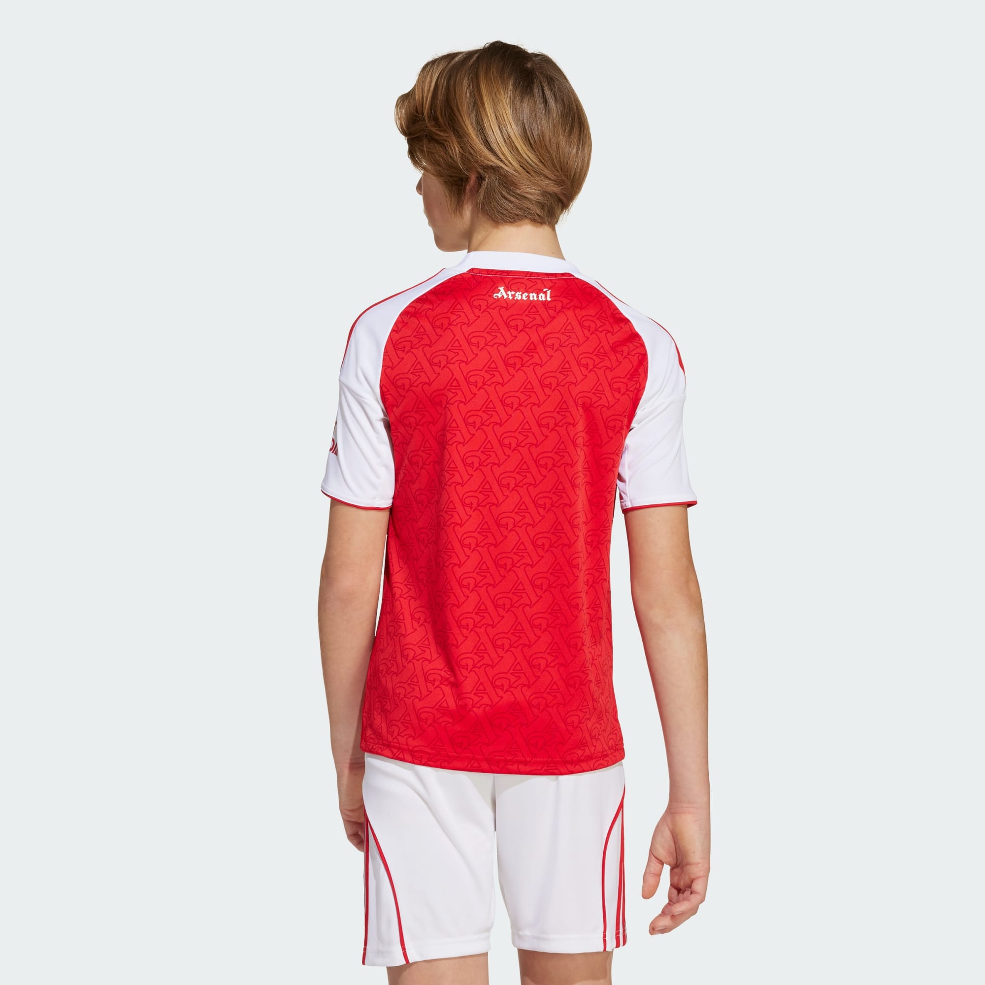 Κόκκινος κορμός, ολόλευκα μανίκια και διακριτικό print με γοτθικά ‘A’ τιμούν την ιστορία της Arsenal.