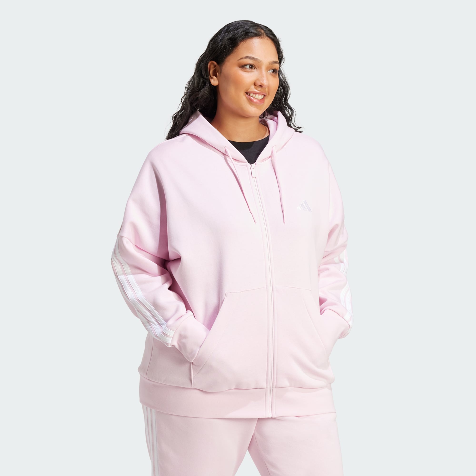 Essentials 3-Stripes Full-Zip Fleece Hoodie (Plus Size)