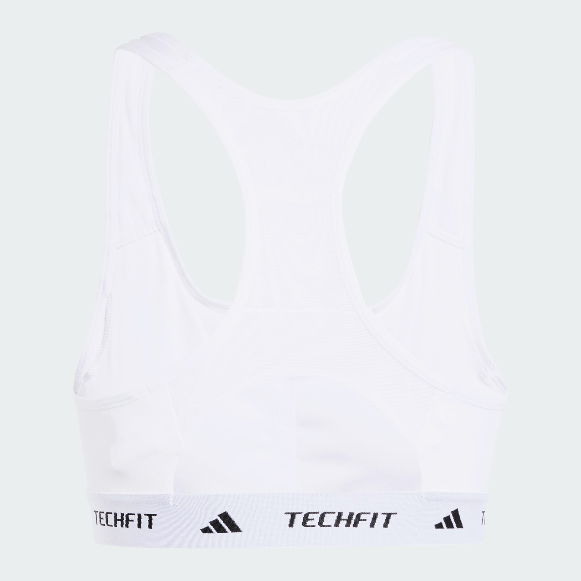 Η εικόνα δείχνει το μεσαίο τμήμα ενός ατόμου που φοράει αθλητικά ρούχα adidas Techfit, συμπεριλαμβανομένης μιας μαύρης μέσης με το λογότυπο Techfit ορατό.