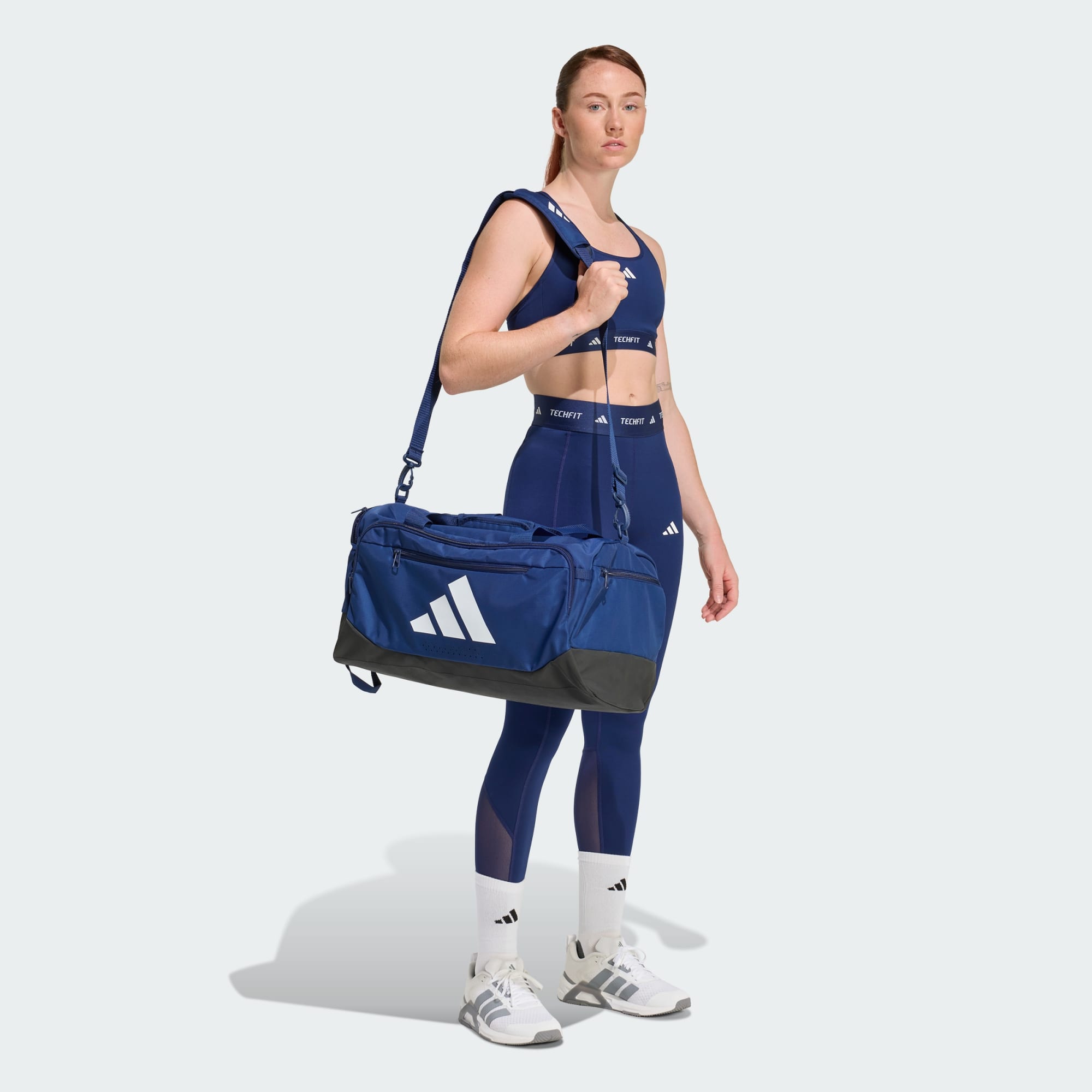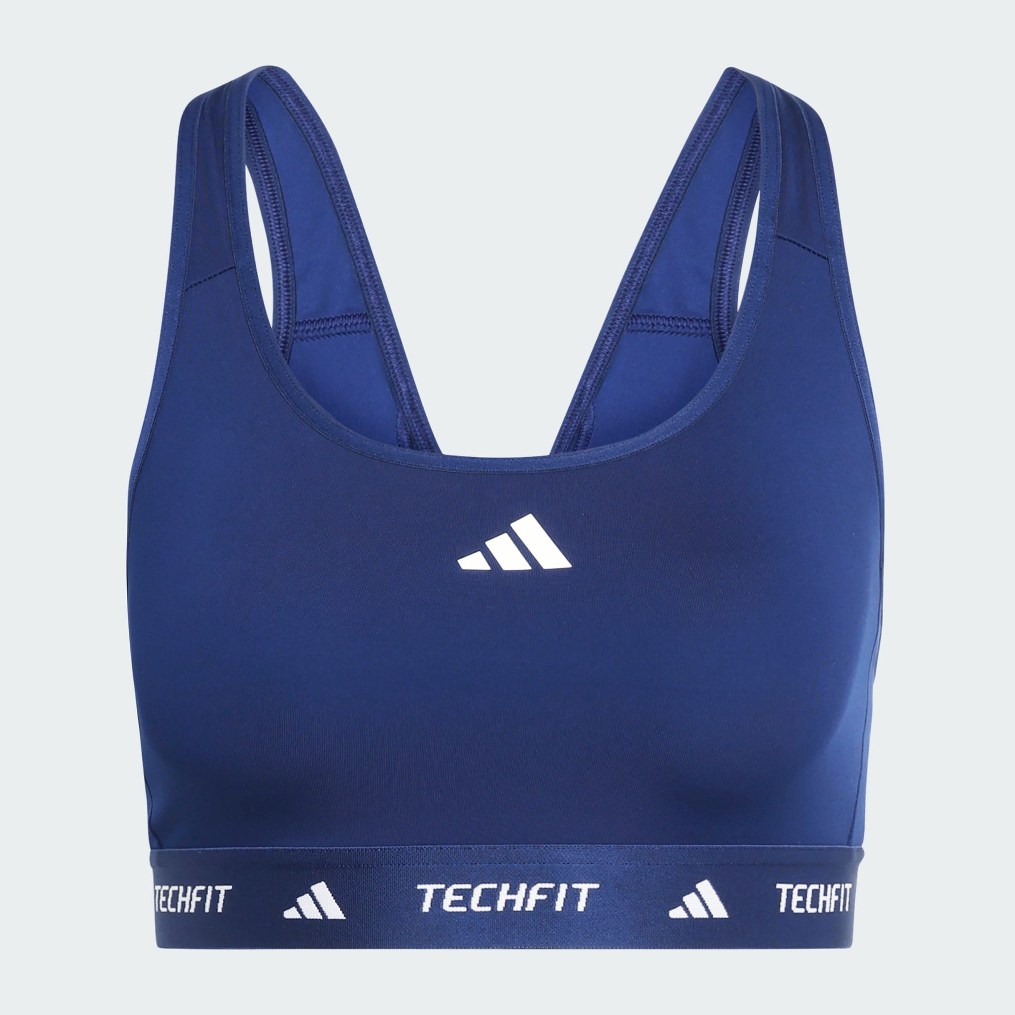 Η εικόνα δείχνει το μεσαίο τμήμα ενός ατόμου που φοράει αθλητικά ρούχα adidas Techfit, συμπεριλαμβανομένης μιας μαύρης μέσης με το λογότυπο Techfit ορατό.